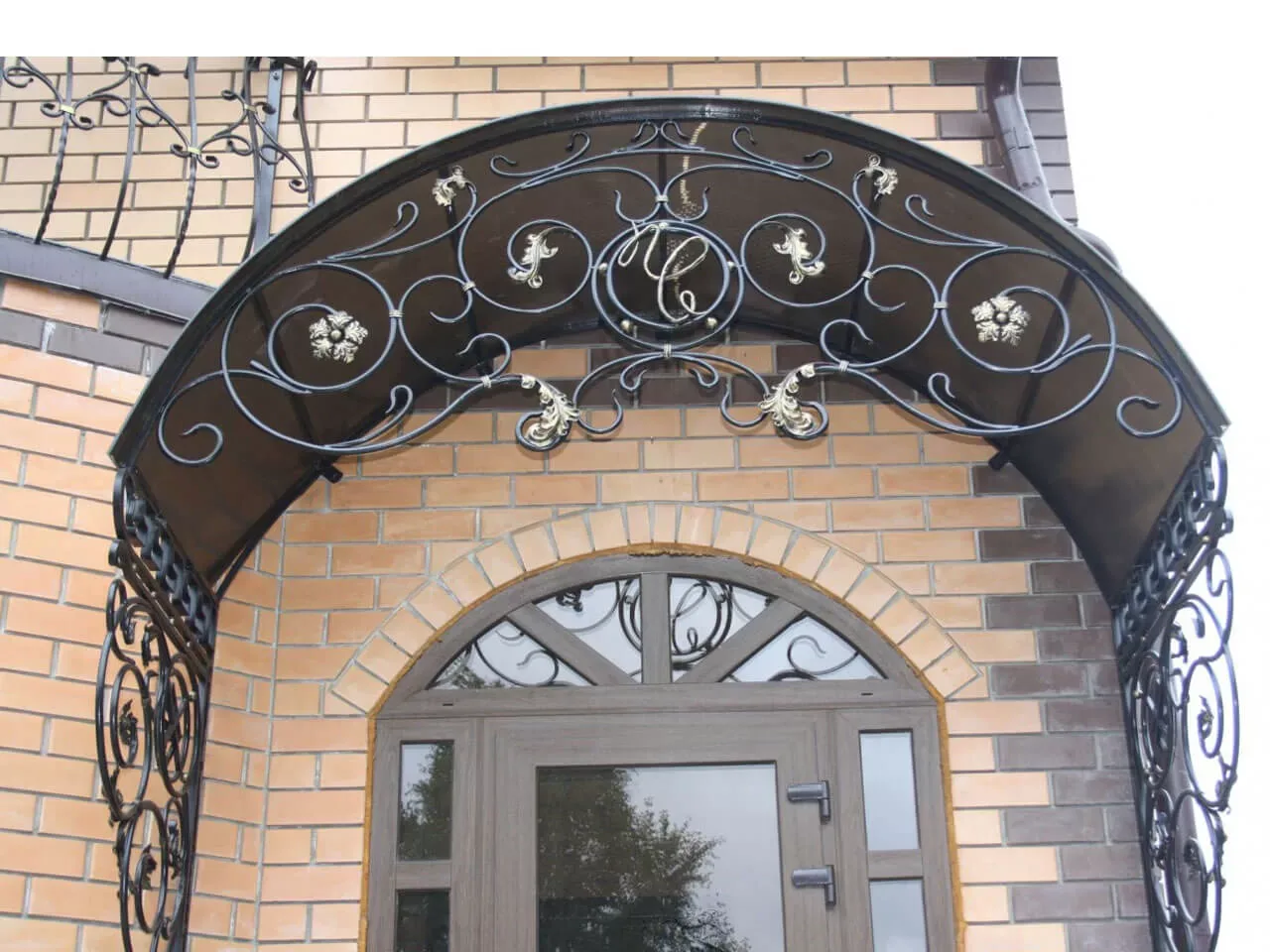 Козырьки с поликарбонатом – это современный и практичный вариант. Они сочетают в себе прочность кованого каркаса и прозрачность поликарбоната, который пропускает свет и защищает от ультрафиолетовых лучей. Козырьки с поликарбонатом подходят для домов в любом стиле и отличаются универсальностью.