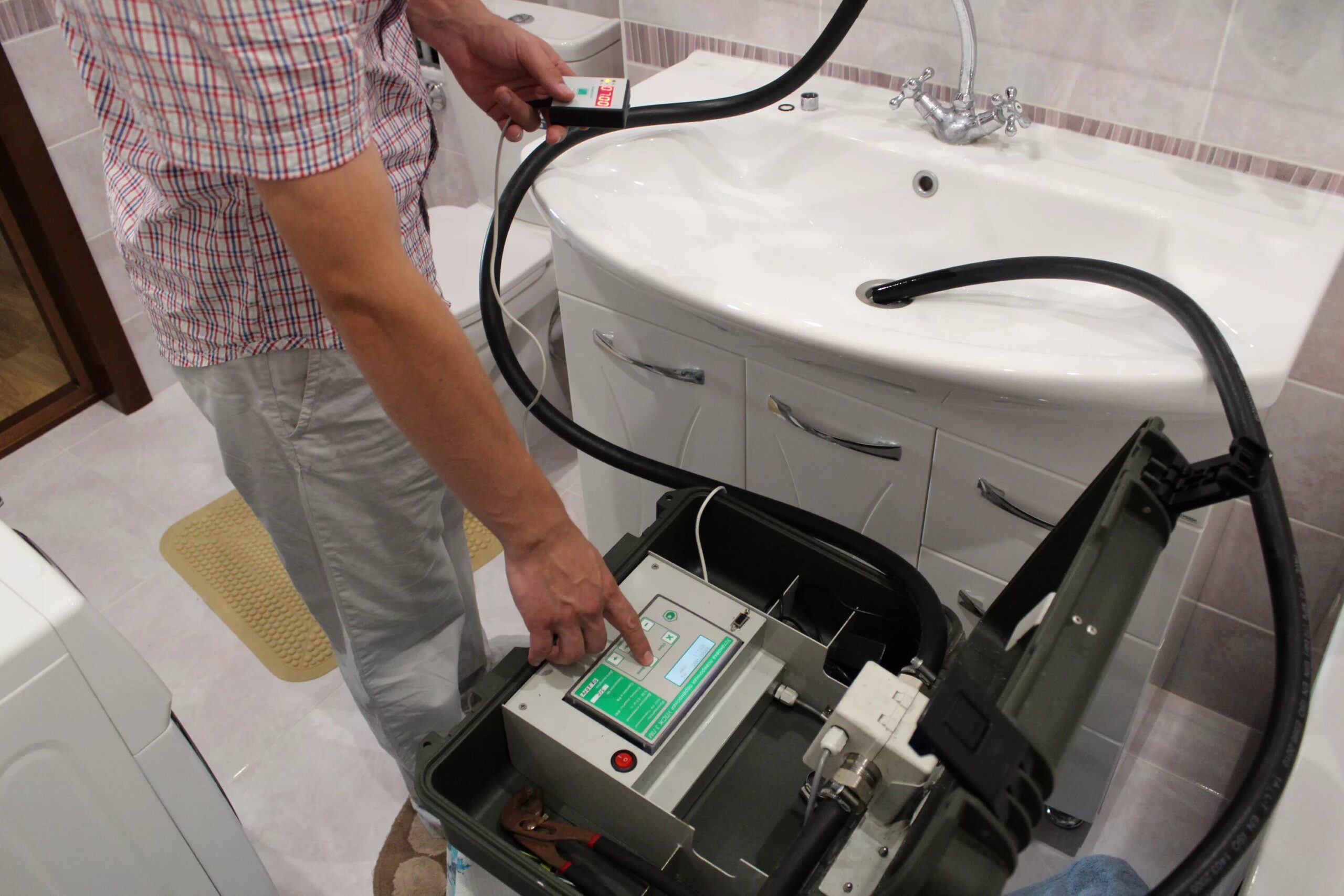 Затем специалист подключает к счетчику переносное поверочное оборудование. Это оборудование позволяет измерить объем воды, прошедший через счетчик, и сравнить его с показаниями счетчика. По результатам измерений делается вывод о точности работы счетчика.