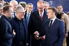 Кир Стармер, Фридрих Мерц и Эммануэль Макрон (слева направо). Фото: Ludovic Marin / Reuters